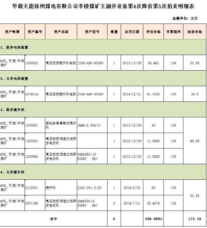 2、華潤天能李樓煤礦二手礦用設(shè)備一批。主要包括:主副井提升機、主副井電控裝置、單雙梁起重機、副井高低壓開關(guān)柜、主井低壓開關(guān)柜、防爆全站儀等。(保證金10萬元)
