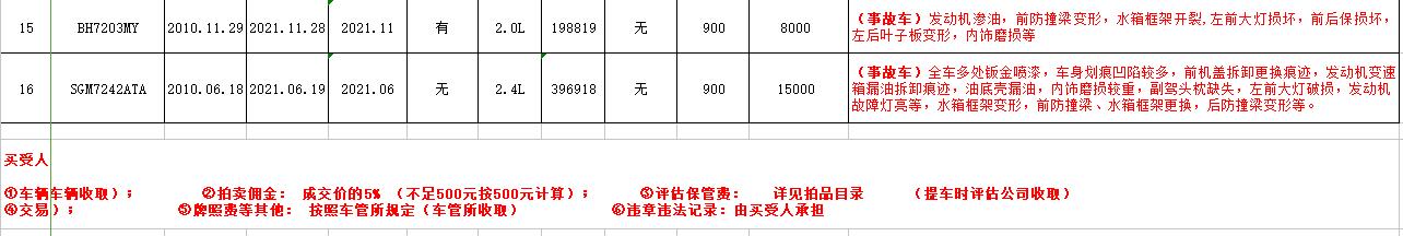 5月22日、24日在徐州銀地二手車交易市場展示。有意競買者請持有效證件到我公司辦理報名手續(xù),并交納每輛車1萬元保證金即可參拍,報名截止至5月24日16時。